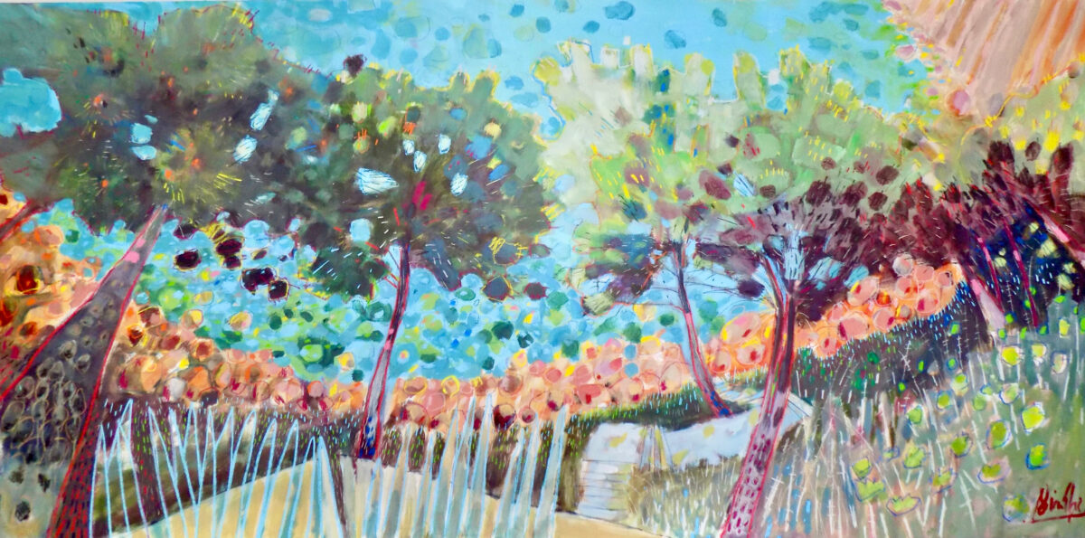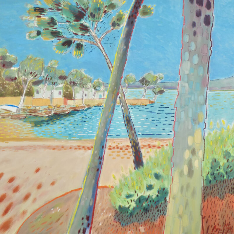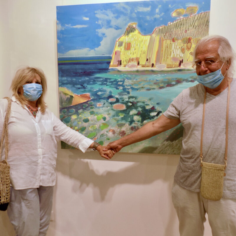 „In den fünf wunderbaren Jahren, in denen ich auf der Insel lebe, hat sich die Art und Weise, wie ich male oder an ein Bild herangehe, entwickelt. Sie verändert sich immer noch von Tag zu Tag. Diese neue Gemäldesammlung zeigt einen umfassenderen Ansatz als sonst, die Art wie ich denke und die Welt um mich herum betrachte. Wie das Wetter und die Jahreszeiten, habe ich wolkige Tage, Regentage und sonnige Tage. Das kann sich auf unterschiedliche Weise manifestieren, von subtilen Farbtönen bis zu harten Linien, von repräsentativen bis zu abstrakten Merkmalen, und all das in einem Gemälde.”