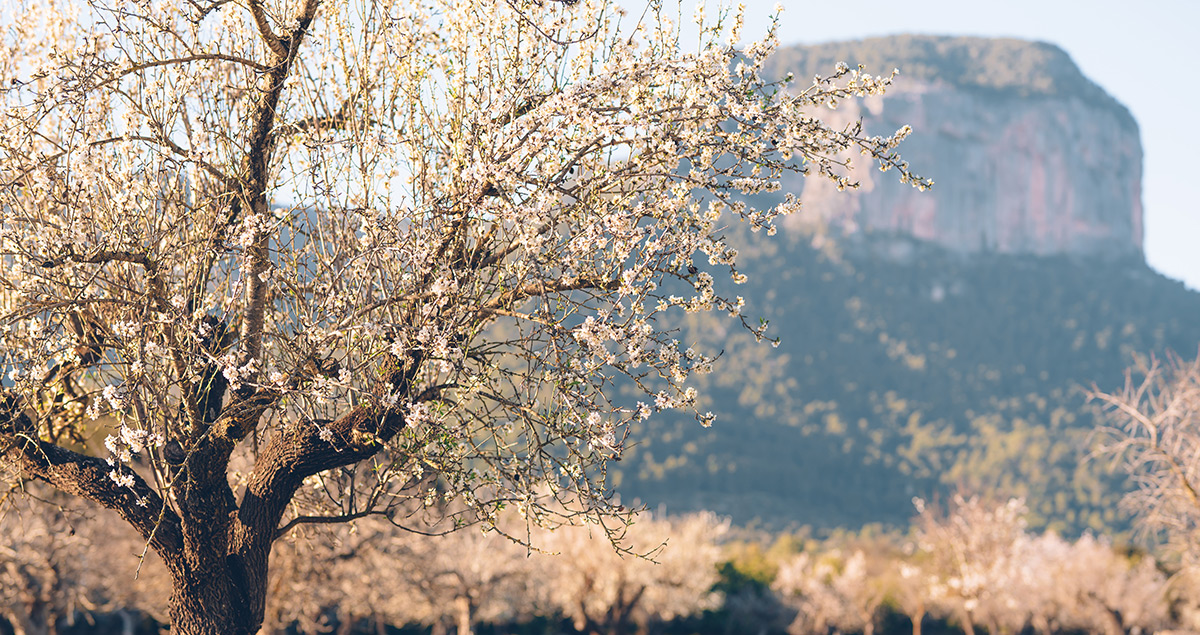 Wer Mitte Februar auf die Insel kommt, sollte die jährliche Mandelblüte nicht verpassen. Wenn sich die weiten Mandelfelder in ein Wolkenbett aus zartrosa Blüten verwandeln, beginnt auf Mallorca der Frühling. Alaró ist ein idealer Ausgangspunkt, um die Mandelhaine der Insel zu erkunden.