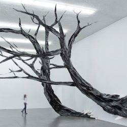 Sards anhaltende Experimente mit Materialien, wie Epoxid, Polyurethan, Fotografie und Video, ermöglichen ihr, ihre Arbeit auszubauen. In ihrer neuesten Ausstellung Displaced Landscape, einer Makroinstallation, wachsen lebensgroße Bäume aus riesigen Löchern in den Wänden der Galerie.
