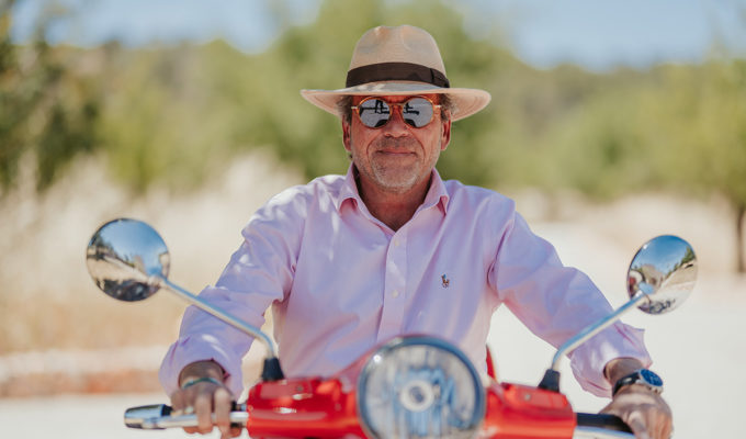 Wenn Andreas Botas von seinem neuen Leben auf Mallorca spricht, schwingt Begeisterung in jedem Wort mit. Man möchte sich am liebsten mit ihm auf die Vespa schwingen und ihn begleiten, auf seinen Besuchen auf dem Wochenmarkt von Alaró oder auf die Weingüter der Insel.