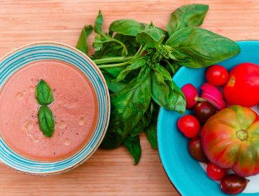 Erdbeer-Gazpacho macht sich auf einem sommerlich gedeckten Tisch immer gut. Fein in Farbe und Geschmack und einfach zuzubereiten.