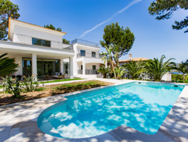Diese unglaubliche Villa mit 6 Schlafzimmern in Costa d’en Blanes zum Verkauf, hat direkten Meerblick und einen 15 Meter langen Salzwasserpool.