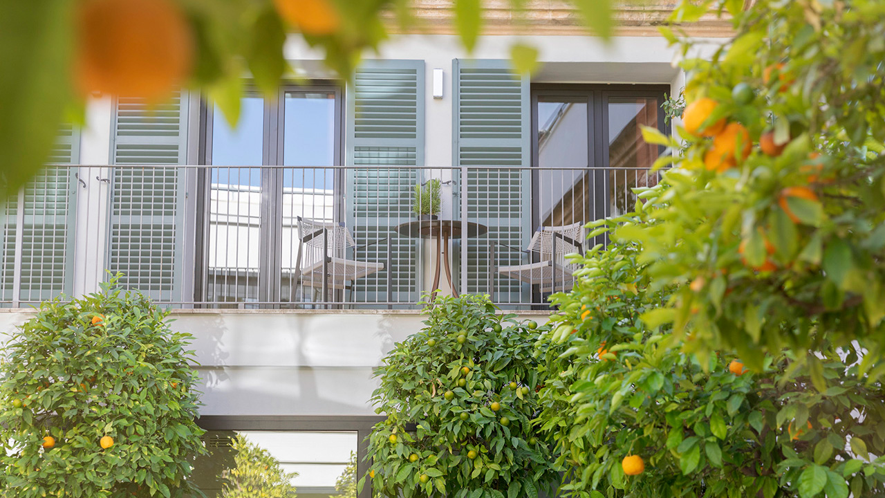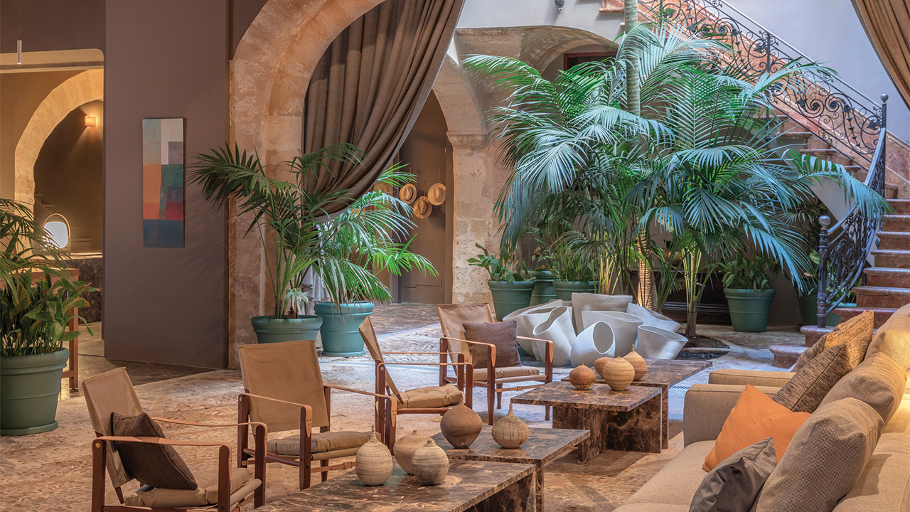 Das Hotel Glòria de Sant Jaume liegt versteckt in einer alten Kopfsteinpflasterstraße in der Nähe des Paseo del Borne. Der historische Adelspalast steht seit dem 16. Jahrhundert unter Denkmalschutz in Palma. Er wurde von den Eigentümern Heidi Wolf und Jordi Cabau sorgfältig gepflegt. Torbögen, Arkaden und Säulen aus Sandstein sind nur einige Beispiele für die palastartige Einrichtung des Hotels, zu der ein Restaurant im Bistro-Stil, eine Champagner-Bar, ein langer Innenpool und Behandlungsräume mit Hammam, Sauna und Entspannungsraum gehören. Die Zimmer sind alle individuell mit Kunst und Antiquitäten aus der persönlichen Sammlung der Besitzer eingerichtet. Handbemalte Fliesen aus Mallorca stehen dabei im Mittelpunkt. Die Einrichtung ist elegant, Pariser Stil trifft auf Belle Epoque – der perfekte Ort für einen romantischen Fünf-Sterne-Aufenthalt in der Stadt.