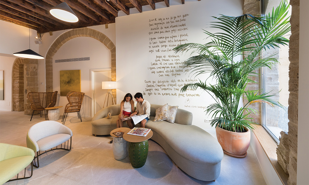 Vergangenheit und Gegenwart verflechten sich in diesem luxuriösen Hotel am Meer in La Calatrava in Palma. Die Einrichtung ist von alter arabischer Kunst geprägt, während innovative Technologie den anspruchsvollen Reisenden des 21. Jahrhunderts zufriedenstellt. Das Altstadtviertel ist umgeben von stimmungsvollen Plätzen, bedeutenden Denkmälern und einzigartigen Boutiquen. Auf der mehrstöckigen Dachterrasse eröffnet sich dem Besucher ein atemberaubendes Panorama. Der Blick auf die Bucht von Palma und die legendäre Sandsteinkathedrale bereichert jedes Essen im Freien, jeden Cocktail und jedes Erfrischungsbad im Infinity-Pool – dem größten der Stadt mit Meerblick. Der renommierte mallorquinische Chefkoch Santi Taura leitet die beiden eigenständigen Restaurants. Das DINS wurde 2020 mit einem Michelin-Stern ausgezeichnet.