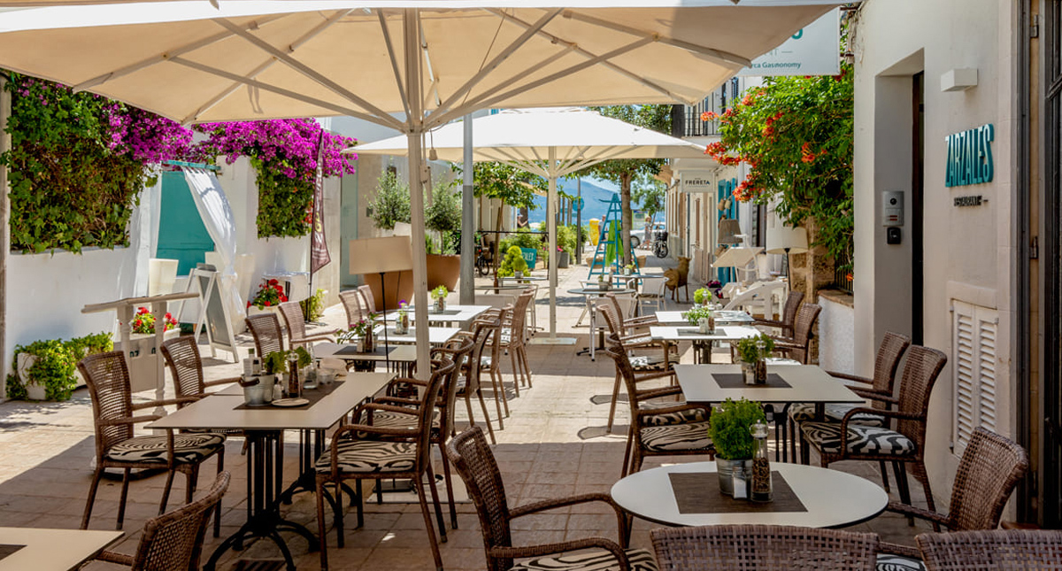 Das Restaurant innerhalb des Bahia Hotels liegt an der mit Kiefern gesäumten Promenade und punktet sowohl mit seiner Umgebung als auch mit seinen Meeresfrüchten. Eine der beiden Restaurant-Terrassen befindet sich direkt am Strand, wo man im Schatten der Kiefern einen wunderschönen Blick über die Bucht genießt. Zudem ist Hoposa Bahia für eine der besten Paellas im Hafen bekannt und hält eine große Auswahl für Fleischliebhaber und Vegetarier bereit.