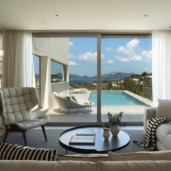 Die Arbeit mit einem solch schwierigen Gelände war ein zweischneidiges Schwert. Einerseits war es eine große Aufgabe, die Villa an den Hang anzupassen. Andererseits bot der Bau auf dem 1.014 Quadratmeter großen Grundstück einen Panoramablick über die Bucht von Pollensa und die unglaublichsten Sonnenuntergänge.