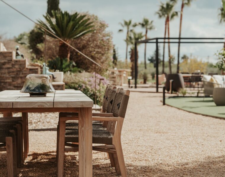 Villa Esbell in Lloseta bietet luxuriöse Außenmöbel, Dekoration und Beleuchtung, die elegante und dauerhafte Räume für ein raffiniertes Leben im Freien schaffen.