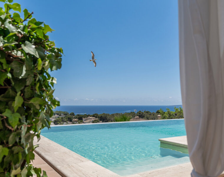 Entdecken Sie eine luxuriöse Villa in Portals Nous mit unvergleichlichem Meerblick, einer ruhigen Umgebung und außergewöhnlichen Wohnräumen.