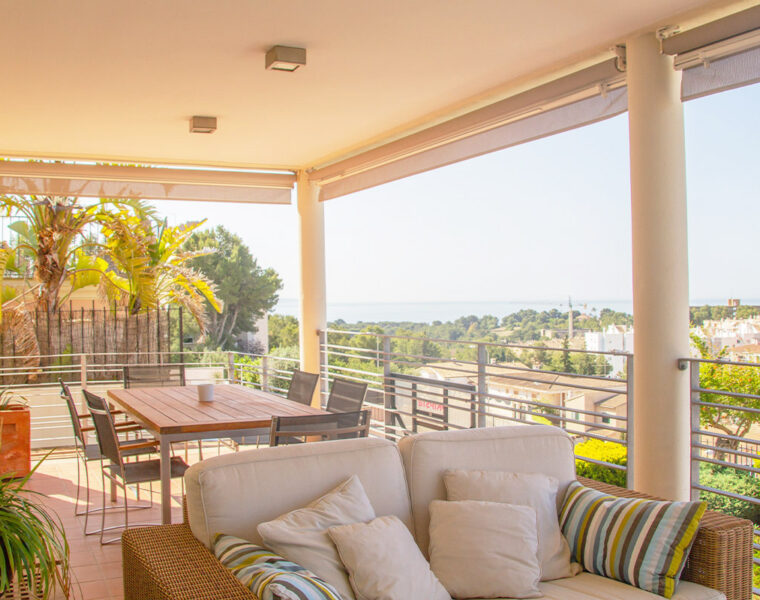 Apartment in Illetas mit freien Blick auf das Meer, den man auf der großzügigen Terrasse genießen kann (ideal für Mahlzeiten im Freien).