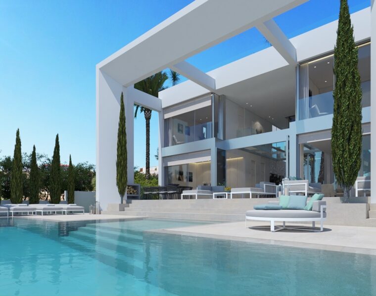 This very rare to find a contemporary 5-bedroom villa is for sale in Son Vida, Mallorca. You will be impressed by its large terraces and pool area, as well as its quality finishes.