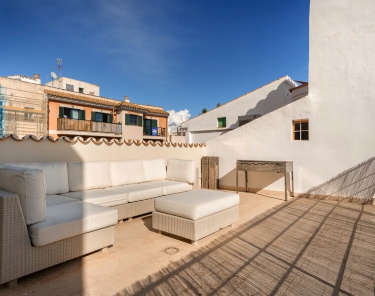 Diese unglaubliche Penthouse-Suite mit 4 Schlafzimmern in der Altstadt von Palma zum Verkauf verfügt über einen atemberaubenden Gemeinschaftspool und eine Gästesuite.
