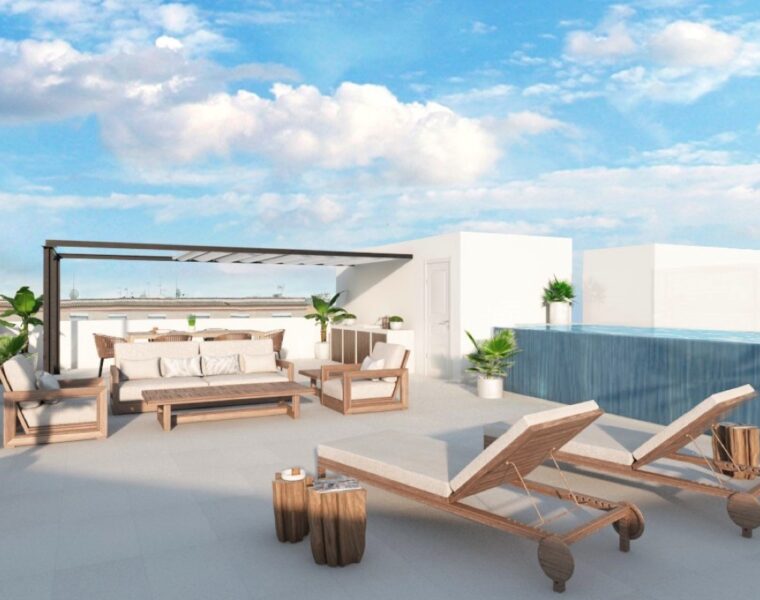 Dieses neue Penthouse steht in Palma zum Verkauf, mit Pool auf dem Dach, bietet einen spektakulären Blick auf das Mittelmeer.