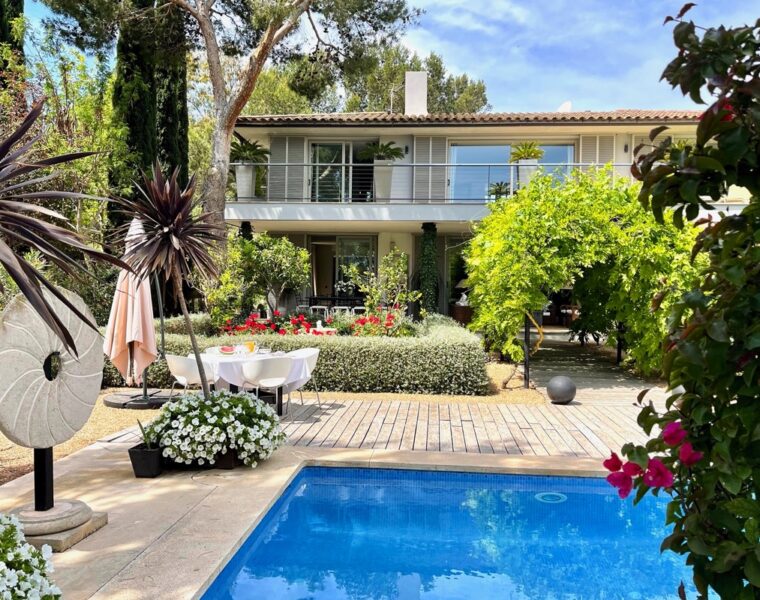 Diese schöne Familienvilla in Santa Ponsa zum Verkauf verfügt über einen Pool und einen großen Garten. Internationale Schulen sind vor der Haustür.