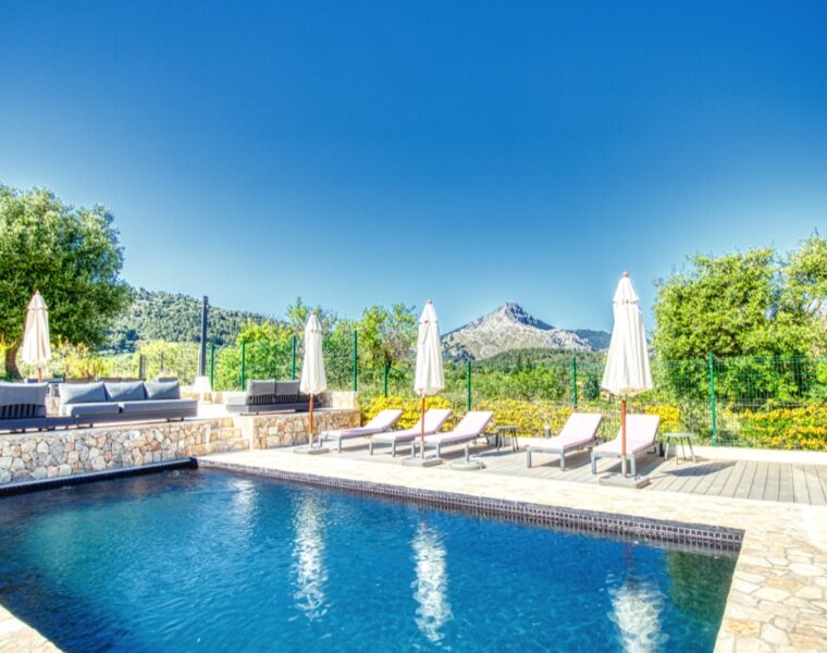 Diese zum Verkauf stehende Villa mit 5 Schlafzimmern in Sol de Mallorca eignet sich für alle, die eine ruhige mediterrane Oase suchen, um Zeit mit Freunden und Familie zu verbringen.