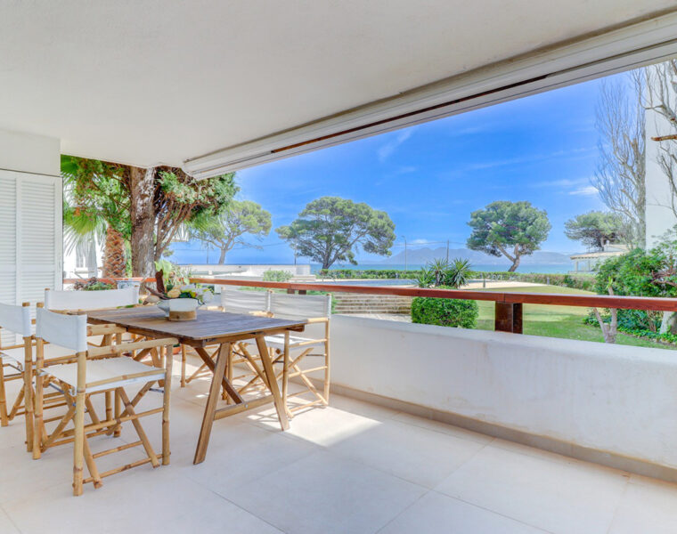 Diese zum Verkauf stehende 3-Zimmer-Wohnung in Port de Alcudia bietet einen herrlichen Blick auf das Meer und den Hafen.