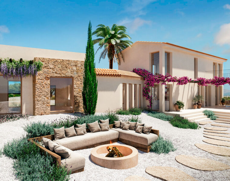 Elegante moderne Villa in Sa Font Seca mit vier Schlafzimmern en suite, angelegtem Garten, Pool, Weinkeller und hochwertigen Naturmaterialien – ein stilvoller Rückzugsort nahe Palma für Liebhaber des bewussten Lebens.