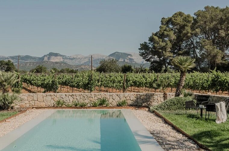 Villa in Biniali auf einem 30 Hektar großen Anwesen mit Weinbergen, vier Schlafzimmern en suite, Mosaikpool und Panoramablick auf die Serra de Tramuntana.