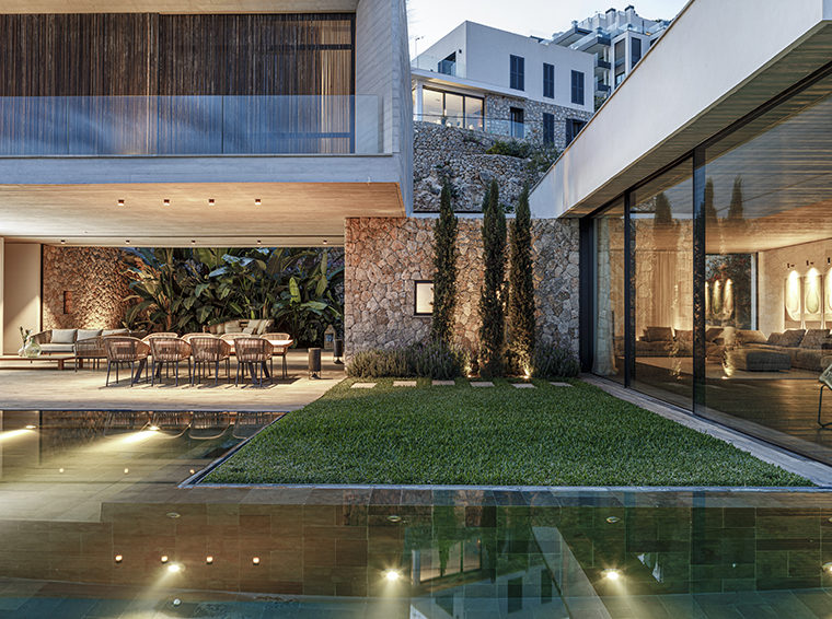 Espacio Home Design hat ein hochmodernes Heimkinoerlebnis im Freien entworfen und installiert, das mit jedem auf der Insel mithalten kann – innen und außen.