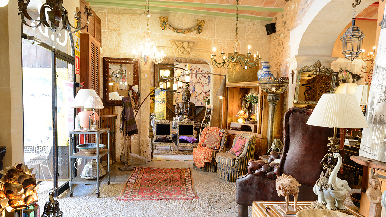 Möbel, Unikate und Antiquitäten geht? Wenn Sie die Galería Barceló in Santanyí noch nicht kennen, geht dort ein Traum für Sie in Erfüllung: Hier gibt es antike Tische, Lampen, Brunnen,