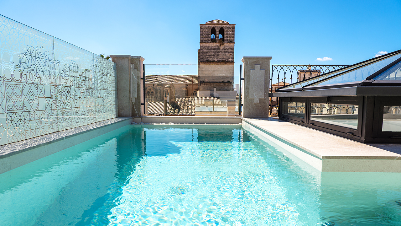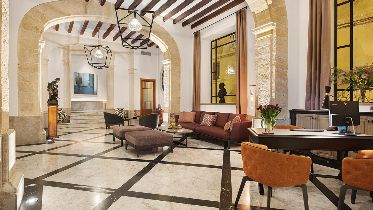 Beim Betreten der atmosphärischen Innenräume des Hotels beeindrucken die sorgfältig restaurierten Details und Highlights sofort. Sie können die prächtige Gestaltung und Atmosphäre eines alten mallorquinischen Herrenhauses, durch die Erhaltung von ursprünglichen Elementen, wie den hydraulisch gemusterten Kacheln und den Sandsteinwänden aus Marès, die von lokalen Kunsthandwerkern sorgfältig restauriert wurden, förmlich spüren.