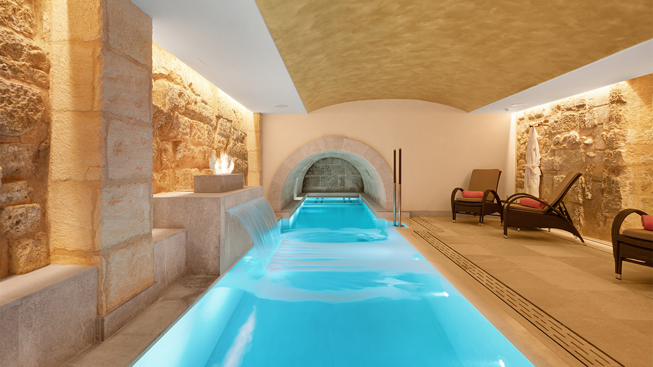 Nach zwei Jahren sorgfältiger Renovierung ist sie nun ein einzigartiges und exquisites 5-Sterne-Boutique-Hotel mit 14 wunderschön und individuell eingerichteten Zimmern, einem unterirdischen Spa mit Pool und Gewölbedecke, einer fantastischen Dachterrasse mit Whirlpool und einem Innenhof, getränkt von natürlichem Sonnenlicht, das dem Restaurant seinen Namen verleiht.