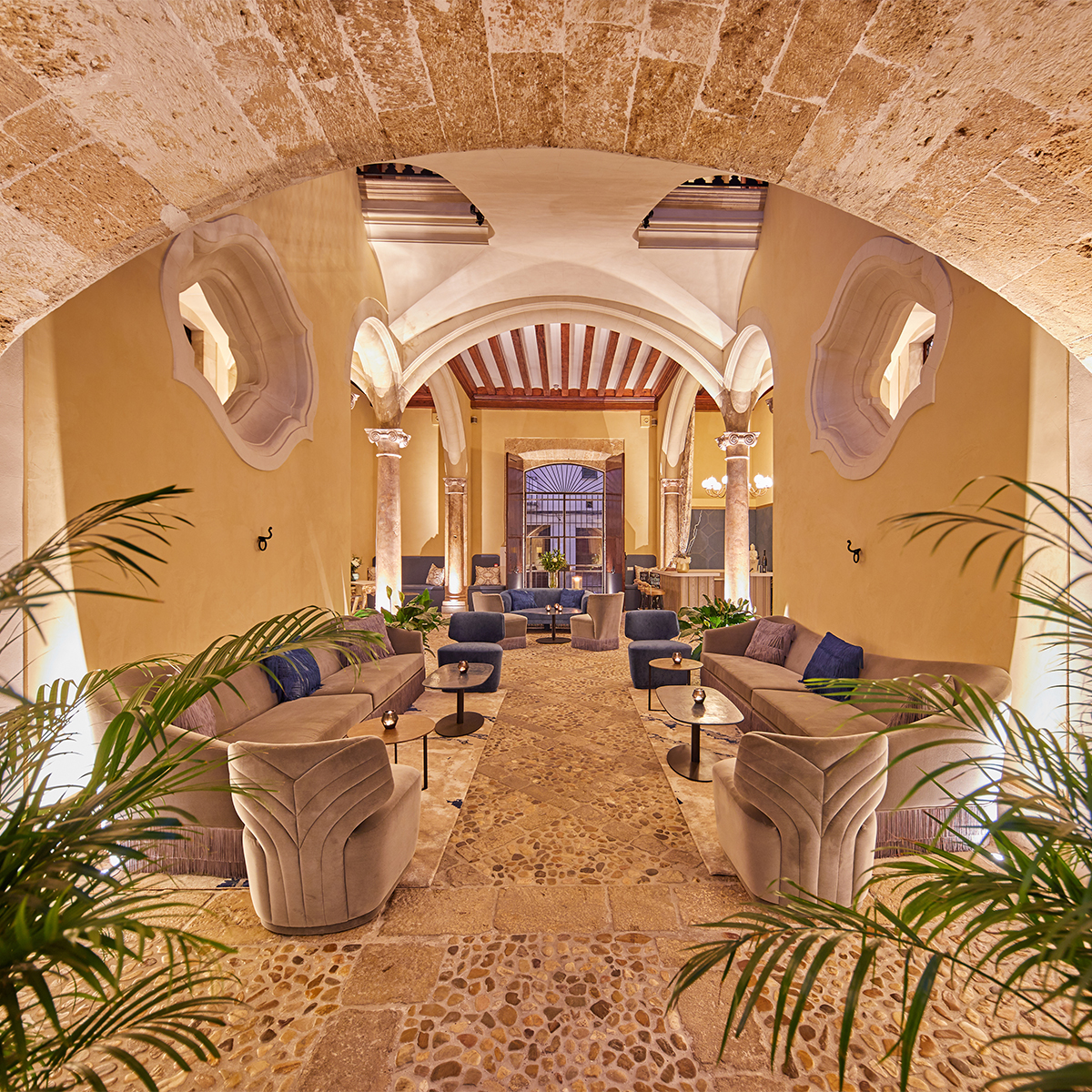 Das Hotel liegt in der malerischen Gegend von La Lonja und ist nur einen Steinwurf vom Meer entfernt. Wenn Sie durch das schmiedeeiserne Tor gehen, fühlen Sie sich sofort eins mit der Geschichte des Palastes. Allein die elegante Architektur und mittendrin die große Treppe beeindrucken.