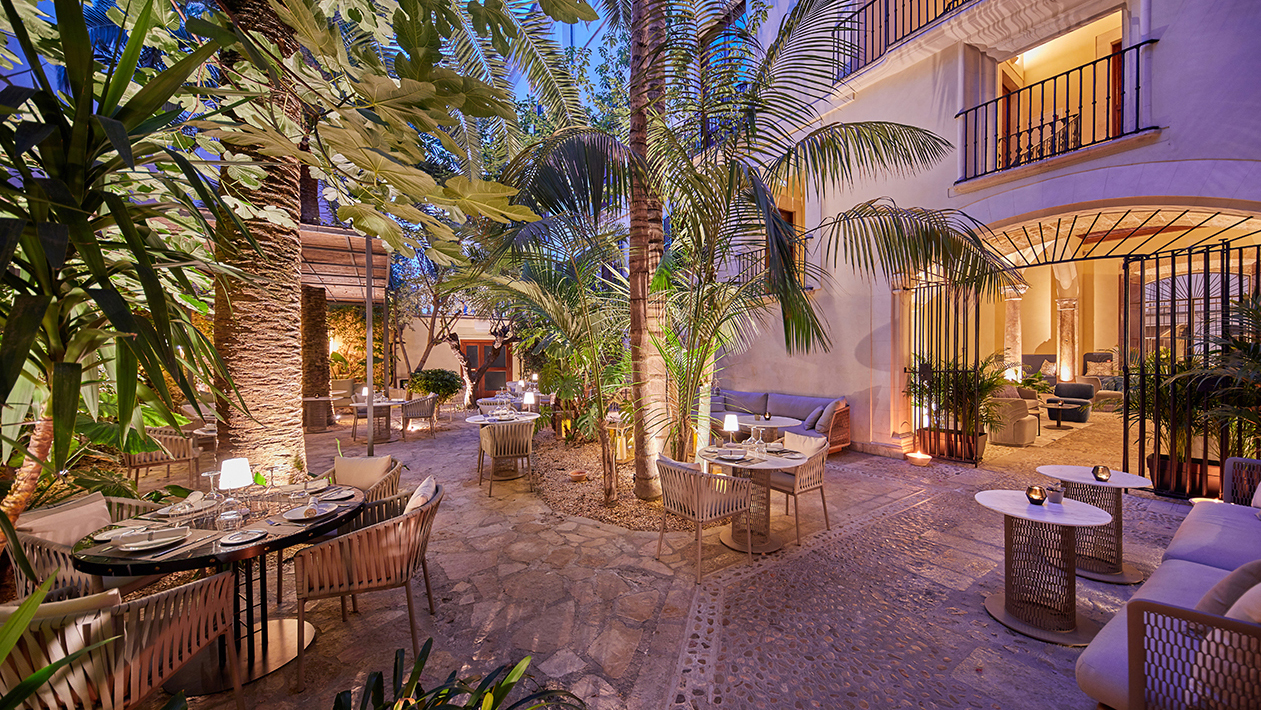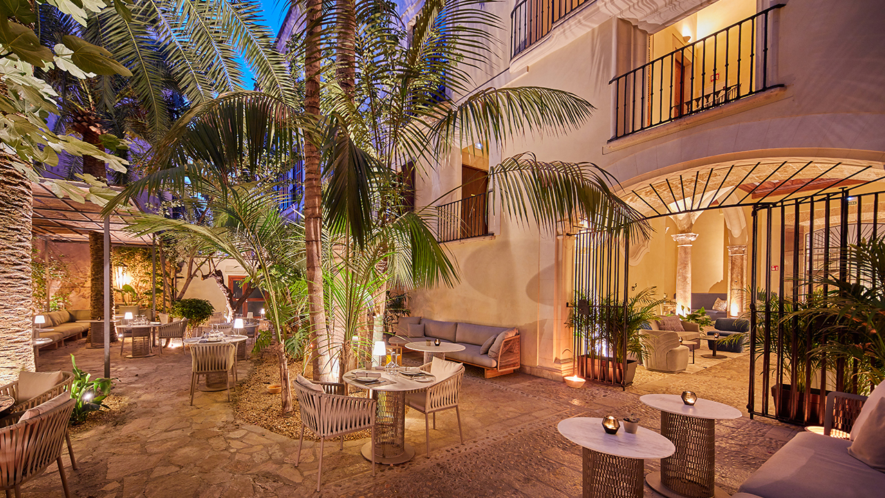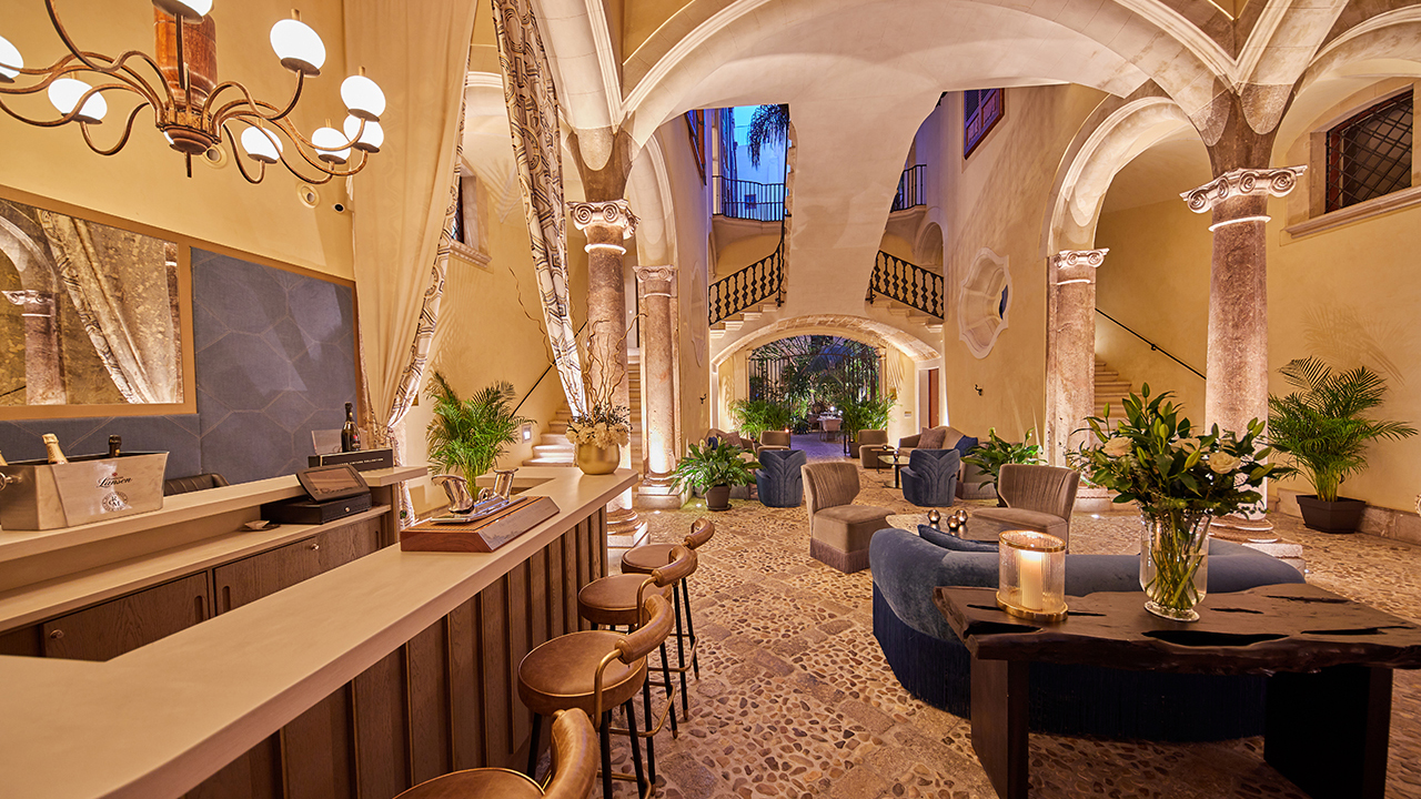 Das Hotel liegt in der malerischen Gegend von La Lonja und ist nur einen Steinwurf vom Meer entfernt. Wenn Sie durch das schmiedeeiserne Tor gehen, fühlen Sie sich sofort eins mit der Geschichte des Palastes. Allein die elegante Architektur und mittendrin die große Treppe beeindrucken.