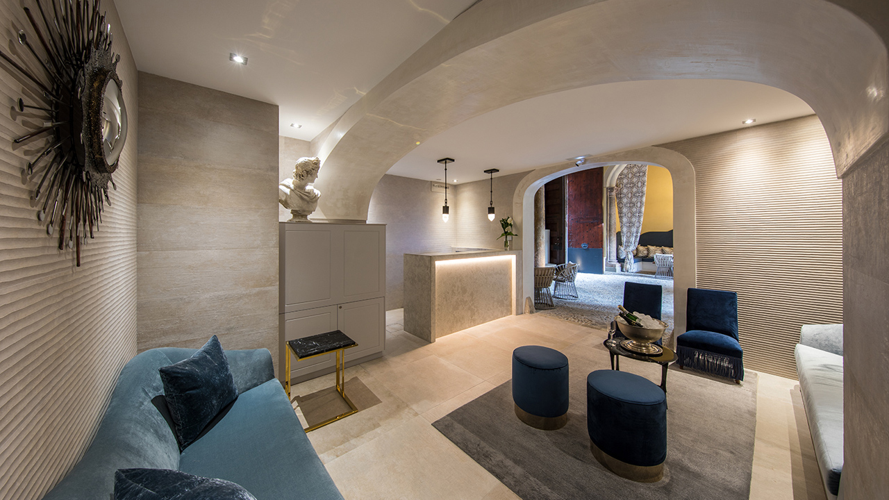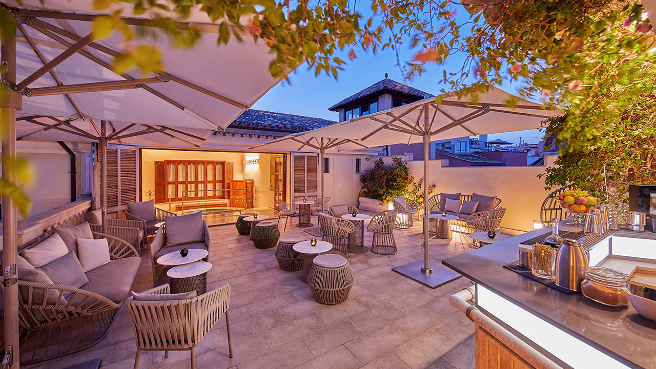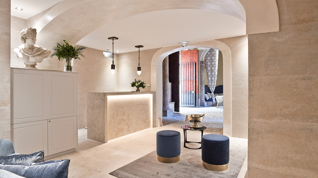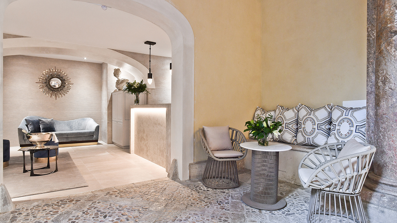 Das Hotel liegt in der malerischen Gegend von La Lonja und ist nur einen Steinwurf vom Meer entfernt. Wenn Sie durch das schmiedeeiserne Tor gehen, fühlen Sie sich sofort eins mit der Geschichte des Palastes. Allein die elegante Architektur und mittendrin die große Treppe beeindrucken.