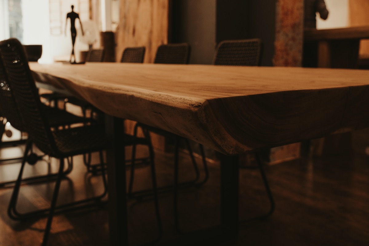 Marc erklärt, dass Nachhaltigkeit für ihn und seine Kunden gleichermaßen wichtig ist und er nur mit zertifiziertem Holz aus verantwortungsvoll bewirtschafteten Wäldern arbeitet. Das ganze Konzept eines großen Tisches ist auf Langlebigkeit ausgelegt und steht im Gegensatz zu ,,schnellen Möbeln” – billigen, trendigen Möbeln, die mit verheerenden Auswirkungen auf die Umwelt produziert werden. Da Marc seinen eigenen großen Tisch seit fast 3 Jahrzehnten besitzt, weiß er, wie wichtig es ist, etwas Einzigartiges und Dauerhaftes zu produzieren. „Ein großer Tisch wird von Generation zu Generation weitergegeben. In Qualität zu investieren ist sinnvoll, für die Familie und für die Umwelt.”