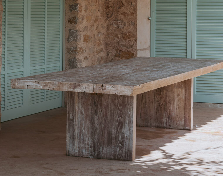 Das Big Table Studio bezieht viele seiner Hölzer, wie Teak und Suar, aus Indonesien, wo Suar bis zu 28 Meter hoch und 2 Meter breit werden kann. Dies ermöglicht die Herstellung von großen Tischen aus einem einzigen Stück, obwohl der Tisch immer hier auf Mallorca zusammengebaut und fertiggestellt wird. Das Studio verfügt über eine eigene Werkstatt in Consell, wo der Tischlermeister das Produkt sorgfältig nach den Wünschen des Kunden anfertigt. „Es gibt immer eine Verbindung zu Mallorca”, sagt Marc, „ob er nun komplett hier in unserer Werkstatt hergestellt oder abschließend bearbeitet und fertiggestellt wird.”
