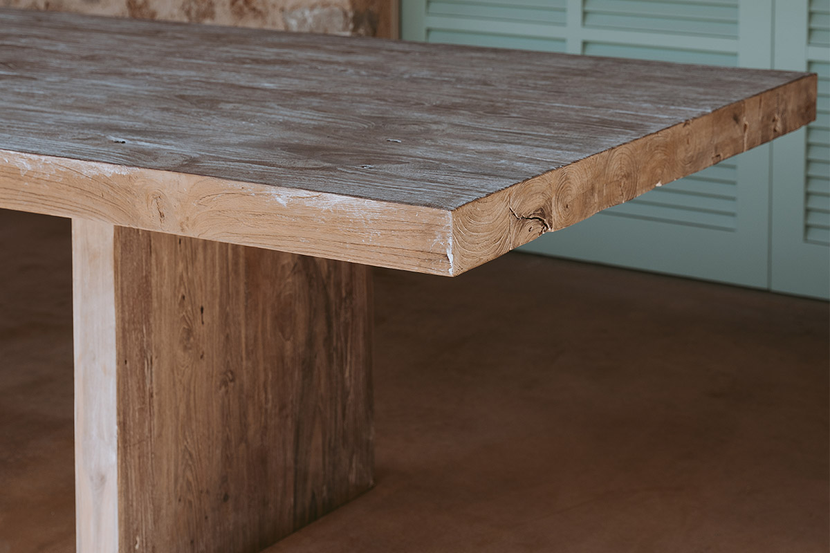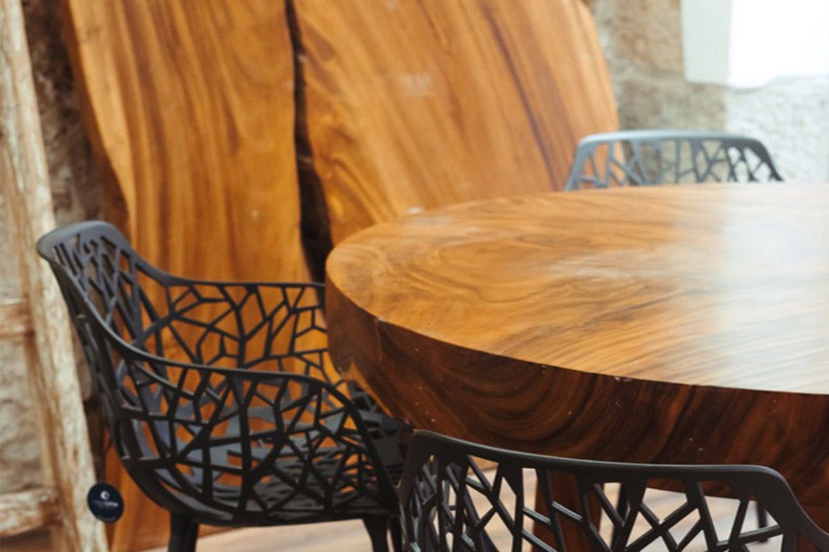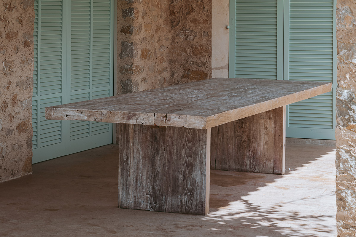 Das Big Table Studio bezieht viele seiner Hölzer, wie Teak und Suar, aus Indonesien, wo Suar bis zu 28 Meter hoch und 2 Meter breit werden kann. Dies ermöglicht die Herstellung von großen Tischen aus einem einzigen Stück, obwohl der Tisch immer hier auf Mallorca zusammengebaut und fertiggestellt wird. Das Studio verfügt über eine eigene Werkstatt in Consell, wo der Tischlermeister das Produkt sorgfältig nach den Wünschen des Kunden anfertigt. „Es gibt immer eine Verbindung zu Mallorca”, sagt Marc, „ob er nun komplett hier in unserer Werkstatt hergestellt oder abschließend bearbeitet und fertiggestellt wird.”