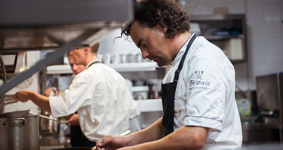 Vor zehn Jahren zog der Koch Domenico Curcio (halb-Italiener/halb-Deutscher) nach Mallorca, was er als den besten Ort der Welt zum Leben beschreibt. Er eröffnete 2011 das Port d’Andratx Restaurant mit der Österreicherin Jenny Terler, die den Service mit der herzlichen Art ihres Heimatlandes leitet. Der Name des Restaurants ist passenderweise Trespais, was ‘drei Länder’ bedeutet.