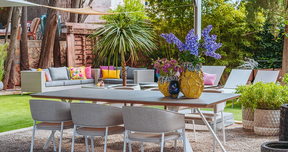Mit dem Schwerpunkt auf dem mediterranen Lebensstil – gepaart mit der langjährigen Erfahrung des Unternehmens in diesem Bereich – liegt der neueste Fokus der Villa Wesco auf dem Trend der Außenküchen. Die Stadtvilla mit ihrem herrlich begrünten Garten mit Pool bietet dafür einen besonders geeigneten Rahmen, zusammen mit einer Auswahl an Möbeln, die sich perfekt für das Leben im Freien eignen.