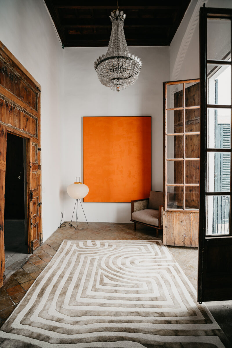 In einer gepflasterten Seitenstraße in der Altstadt von Palma haben Edin und Lina beschlossen, ihre nächste Dusty Deco zu eröffnen. Das Designgeschäft befindet sich in einem prächtigen mallorquinischen Palast in der Calle Sant Jaume, voll von historischen Schätzen. „Der Palast ist im Besitz der Familie Morell, mit einem der ältesten Stammbäume Mallorcas. Wir leben und atmen Geschichte, indem wir einfach hier sind“, sagt Edin. Er führt uns in den stattlichen Empfangssaal, der hohe spanische Decken, skandinavische Kunstwerke, hessische Lampenschirme und afrikanische Masken beherbergt. Die Mischung ist elektrisierend und doch irgendwie gemütlich, so als wären wir in ihrem Haus. Als wir dies Edin sagen, lächelt er: „Genau so wollen wir, dass Sie sich fühlen. Dusty Deco ist ein Zuhause, das andere Häuser inspiriert, es ist bewohnt.“ Lina sieht ihn an und stimmt ihm zu. „Wir denken für den Alltag. Unsere Küche zu Hause hat alles in einem: Baby, Hund, ein Küchentisch voller Materialien… alles findet dort statt. Man kann Design und Alltag nicht voneinander trennen, sie verschwimmen.“