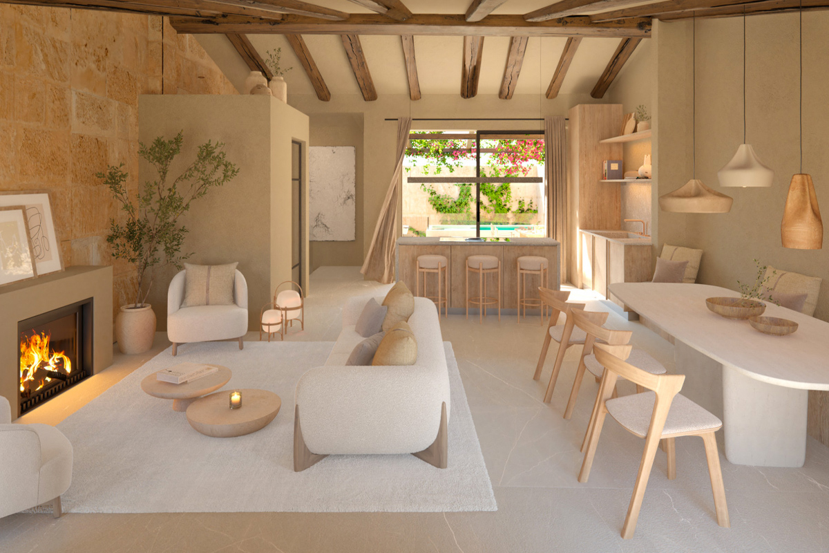 Die Inneneinrichtung wurde unter Berücksichtigung des luxuriösen mallorquinischen Stils bis ins kleinste Detail durchdacht, um zu den Ursprüngen zurückzukehren. Das Haus wurde restauriert, wobei in einigen Bereichen der ursprüngliche Marmor und das Mauerwerk erhalten wurden. Einige dieser Arbeiten sind in die Räume des Hauses integriert, da sie Teil seiner Geschichte sind und ihm einen großen Wert und eine Einzigartigkeit verleihen.