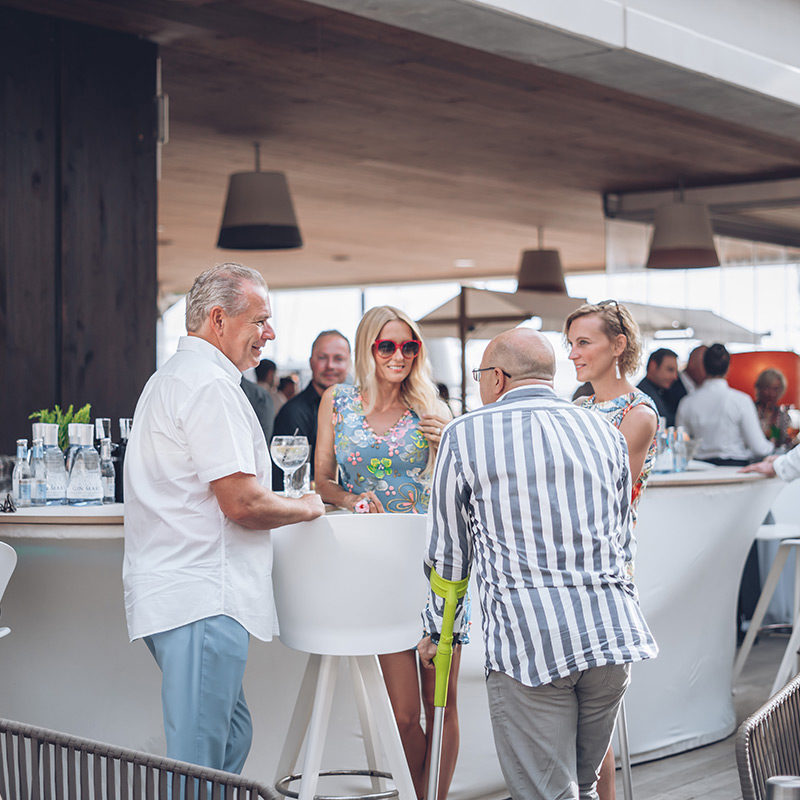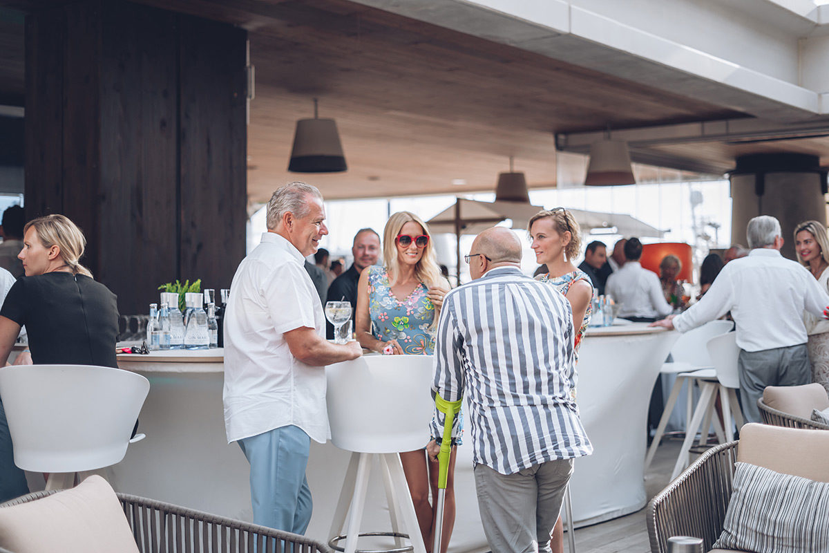 Gäste von der ganzen Insel feierten mit dem Team von First Mallorca ein weiteres fantastisches Geschäftsjahr und genossen dabei einen atemberaubenden Blick auf den Sonnenuntergang.