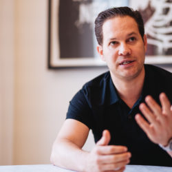 Wir verlassen eine Straße in Palma und treten ein in das Büro von Drew Aaron, dem Besitzer der Gallery Red; gefühlt könnten wir auch in New York City sein. Es ist ein innovativer Raum, durch Glasverkleidungen strukturiert und mit moderner Kunst dekoriert. Jedes einzelne Werk fordert uns zur näheren Betrachtung auf, was direkt in unserer ersten Unterhaltung mündet. Drew zeigt auf ein Werk von Damien Hirst in einer Ecke und dann zu einem Gemälde auf seinem Schreibtisch. „Das ist heute erst reingekommen. Und es wird hierbleiben.“ Er nimmt es vorsichtig hoch und grinst dabei. Alle seine Werke stehen im Dialog zueinander und genau das ist das Geheimnis hinter einer großartigen Kunstgalerie, erklärt Drew.