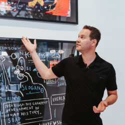 Aaron wurde zu einem der Top 50 Kunstsammler der Welt unter 50 Jahren erklärt und die Gallery Red lässt sich sowohl auf seine große Leidenschaft als auch auf seinen gesunden Geschäftssinn zurückführen. Er ist nicht nur Vorstand von Lionsgate Capital, der führenden Hypothekenfinanzierungsfirma auf Mallorca und Ibiza, sondern auch ein versierter Sammler von Kunst, Design und Immobilien. Originalwerke von Andy Warhol, Basquiat oder Damien Hirst hängen neben Arbeiten von Größen wie Banksy und einigen exklusiv auf den Balearen ausgestellten spanischen Künstlern wie Santiago Picatoste. Zwischen Designs von Eero Saarinen, George Nelson, Arne Jacobsen und Gio Ponti findet man Influencer der kommenden Generation.