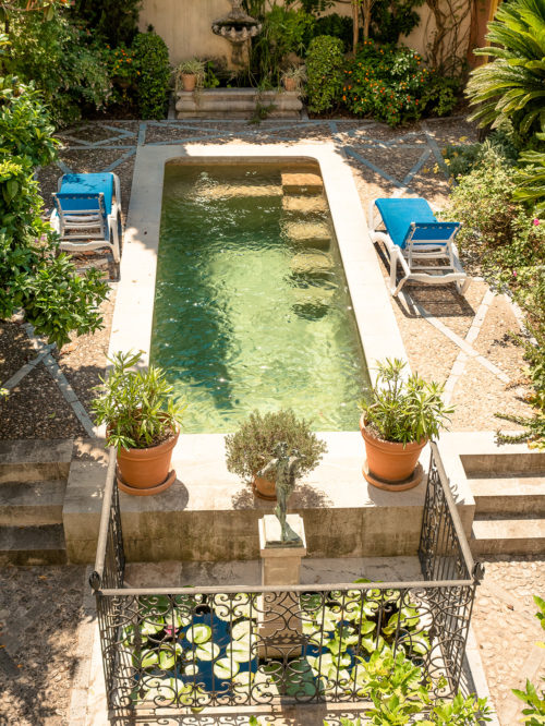 Im Erdgeschoss befinden sich komfortable Bereiche und große Salons, darunter groß geschnittene Wohn- und Esszimmer, ein Arbeitszimmer und eine gemütliche Bibliothek. Die meisten Räume haben einen Kamin für den Winter. Wunderschön geschnitzte Balustraden säumen Steintreppen, die im Zickzack in die höheren Stockwerke hinaufführen, wo sich jeweils 6 Schlafzimmer mit eigenen Badezimmern erstrecken. Aber das Juwel dieses entzückenden Anwesens ist der geräumige Innenhof, in dem eine Vielfalt an mediterranen Pflanzen einen abgeschiedenen und bezaubernden Außenbereich mit einem gemeinsamen Pool bilden.