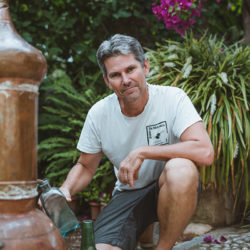 Er bückt sich, um eine Glasflasche an die Kupferdestillationseinheit anzupassen, die für den in der Luft liegenden Duft von Orangen verantwortlich ist. Zitrusfrüchte, Mandeln, Lavendel, Rosmarin und Kiefer sind nur einige der natürlichen Inhaltsstoffe der Insel, aus denen er ätherische Öle herstellt. Er verbraucht jedes Jahr 1000 Liter Olivenöl. Seine Sammlung umfasst Parfüms, Körperöle, Seifen und Shampoos.