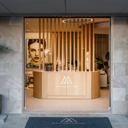 Trotz der Assoziation mit Ultraluxusreisen war das Hauptkonzept hinter dem Projekt „sich wie zu Hause fühlen“, erklärt Marga Comas. Und tatsächlich sind die intelligenten, aber unkomplizierten Räume kunstvoll gestaltet, um dem Kunden genau dieses Gefühl zu geben. Helle Holzwände in verschiedenen Formen und Größen schaffen visuelle Abgrenzungen zwischen den verschiedenen Bereichen und vermitteln ein Gefühl von Intimität. Teppichböden absorbieren auch Außengeräusche und tragen so zu einer ruhigen Atmosphäre bei.