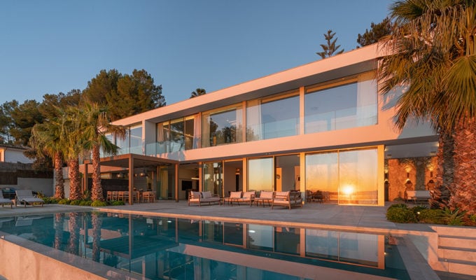 Wie lässt sich das Gefühl des Meeres vermitteln? Mit sanfter Bewegung und offenem Raum? Das war das gestalterische Rätsel, mit dem Alejandro Palomino konfrontiert wurde, nachdem er die Bedürfnisse seiner Kunden in Santa Ponsa erfahren hatte. Um die Illusion einer flüssigen Form für dieses 6 Schlafzimmer-Familienhaus zu schaffen, hat sich Alejandro mit den Projektmanagern von APM Mallorca zusammengetan. Gemeinsam arbeiteten die beiden Firmen das geschwungene Motiv des Meeres in die Positionierung ein und spiegelten so die nahen gelegenen Buchten um Cap Negret und die Malgrat-Inseln wider.