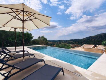 Diese atemberaubende Villa in Alaró bietet einen Panoramablick, luxuriöse Annehmlichkeiten und einen privaten Zugang zu einem UNESCO-Nationalpark.