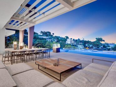 Diese außergewöhnliche Villa in Portals Nous bietet einen Panoramablick auf das Meer, eine luxuriöse Innenausstattung und einen ruhigen mediterranen Garten.