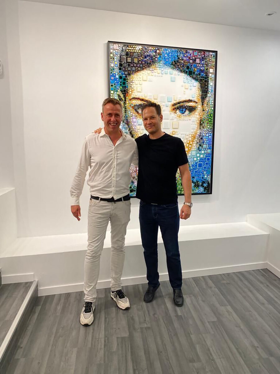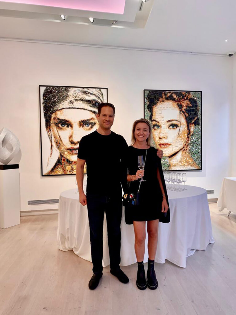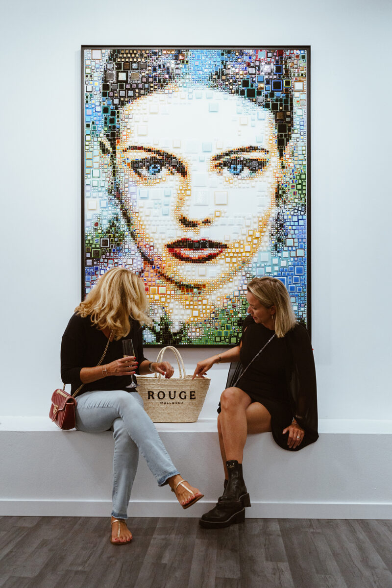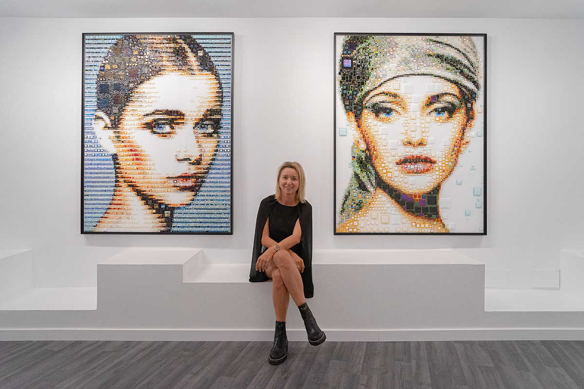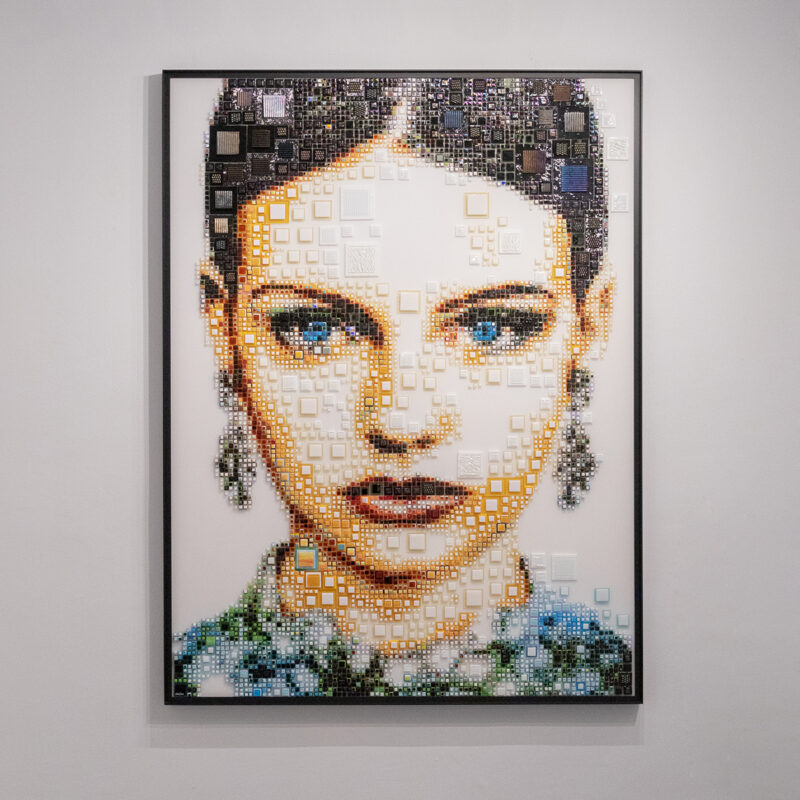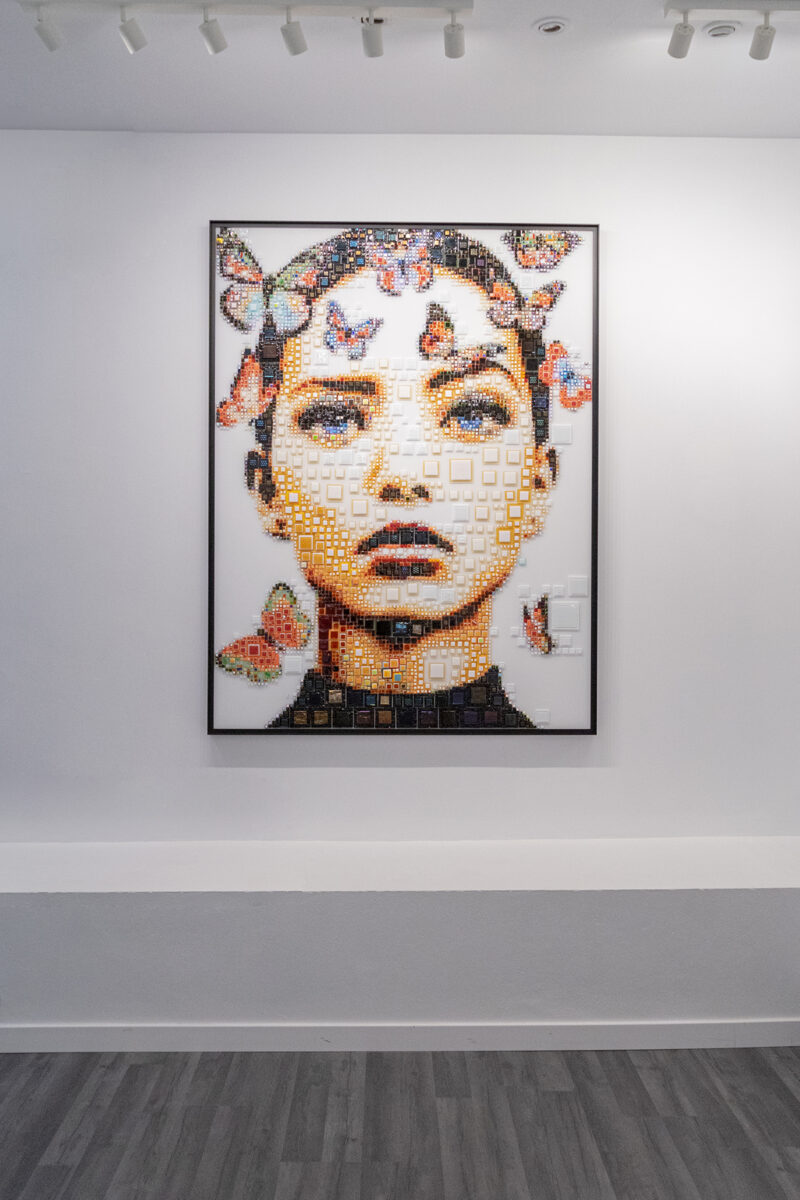Die farbenfrohen Glasstücke sind wie die Farbpunkte der Pointillisten: aus der Nähe ein abstraktes Bild, aus der Ferne ein eindrucksvolles und präzises Porträt.
