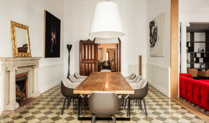 „Häuser auf dem Land haben eine wichtige Bedeutung, da sie sich gut integrieren müssen“, sagt Salvá, der die traditionellen ästhetischen Kriterien der Gegend beibehielt, indem er lokale, für den Mittelmeerraum typische Materialien verwendete. Mittelmeerraum bedeutet: Santanyí-Stein für die Wände, kombiniert mit einer Stuckverkleidung in Ockertönen; schräge arabische Ziegeldächer; geschmackvolle graue Zarci-Marmorböden innen und außen.
