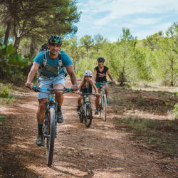 Jon und Amaia propagieren zwar etwas Disziplin in Sachen Fitness, aber sie finden vorallem, dass ein gesundes Leben entspannt, voller Spaß und mit viel zum Lachen sein sollte. „Lieben Sie, was Sie tun und wie Sie sich bewegen, und die Gesundheit wird folgen“, erklärt Jon und fügt hinzu, dass Motivation überall auf Mallorca vorhanden ist. Vom Sonnenschein bis hin zu Spaziergängen an der Seeluft und in den Pinienwäldern bietet sich die Insel bestens an, um sich im Freien zu bewegen. Allerdings gibt es für Familie Arambalza-Moreda nur einen Ort, den sie alle mit gleicher Begeisterung genießen. „Der Wald bei Castell de Bellver“, sagt die kleine Naia mit einem Grinsen, als Jon ihren Fahrradhelm aufsetzt. „Das ist der beste Platz zum Mountainbiken“, strahlt er, nimmt sein Fahrrad und fährt mit seiner Familie in den Wald.