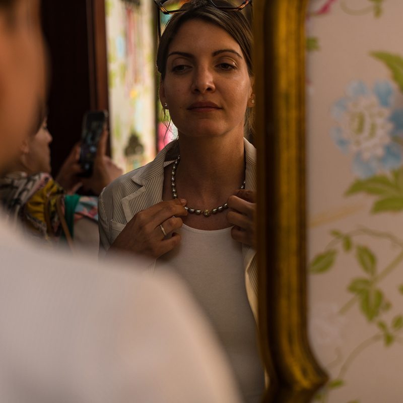 Die Gäste, darunter Herausgeber, Immobilienmogule und Künstler, waren umgeben von den golden verzierten, filigranen Arbeiten und wertvollen, funkelnden Steinen.