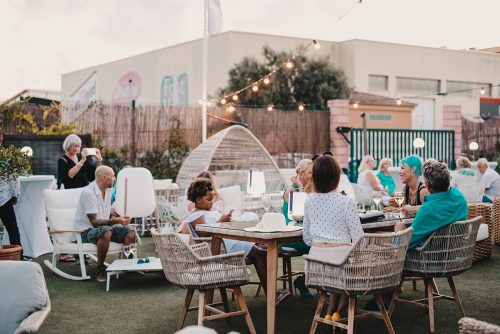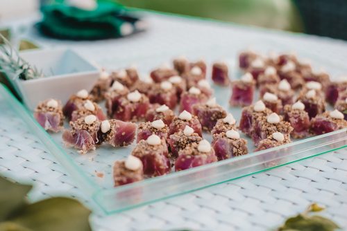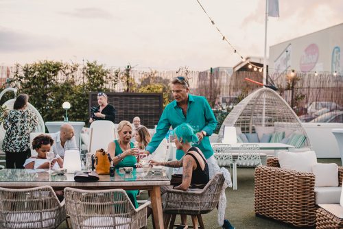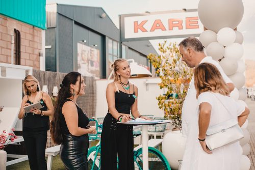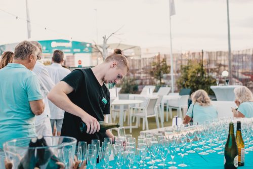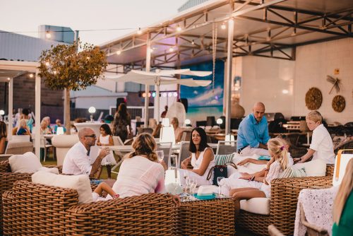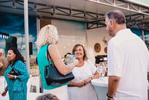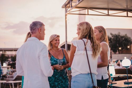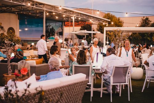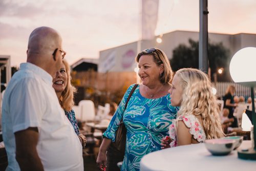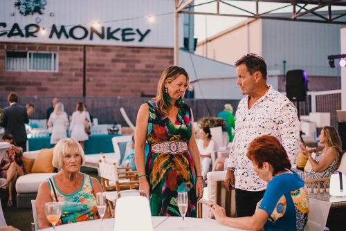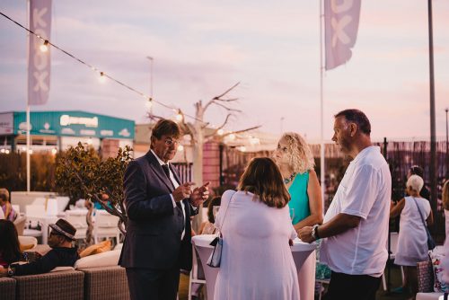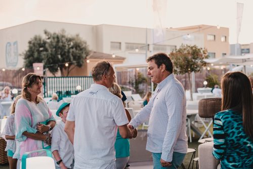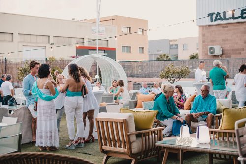 Passend zu den Farben des Unternehmens war die Kleiderordnung ein Hauch von Weiß und Türkis, und die Gäste – eine Mischung aus Kunden, Freunden und Familie – erfüllten die Aufgabe mit Bravour.