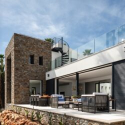 Es wäre schwer, sich nicht in Port Verd von Medina Architecture zu verlieben. Seine Lage, nur 5 Meter vom Meer entfernt, bietet nicht nur eine unschlagbare Aussicht, sondern auch das beruhigende Rauschen des Meeres. Um die Privatsphäre zu wahren und absolute Ruhe zu garantieren, haben die Boutique-Architekten einen zentralen Innenhof geschaffen, der auf beiden Seiten abgeschirmt ist. Diese Terrasse ist mit dem Swimmingpool, dem Wohnbereich, der Küche und den Schlafzimmern verbunden. Das fließende Design schafft eine Atmosphäre der absoluten Entspannung, in der jeder Bereich durch das besondere Panorama des Meeres belebt wird.